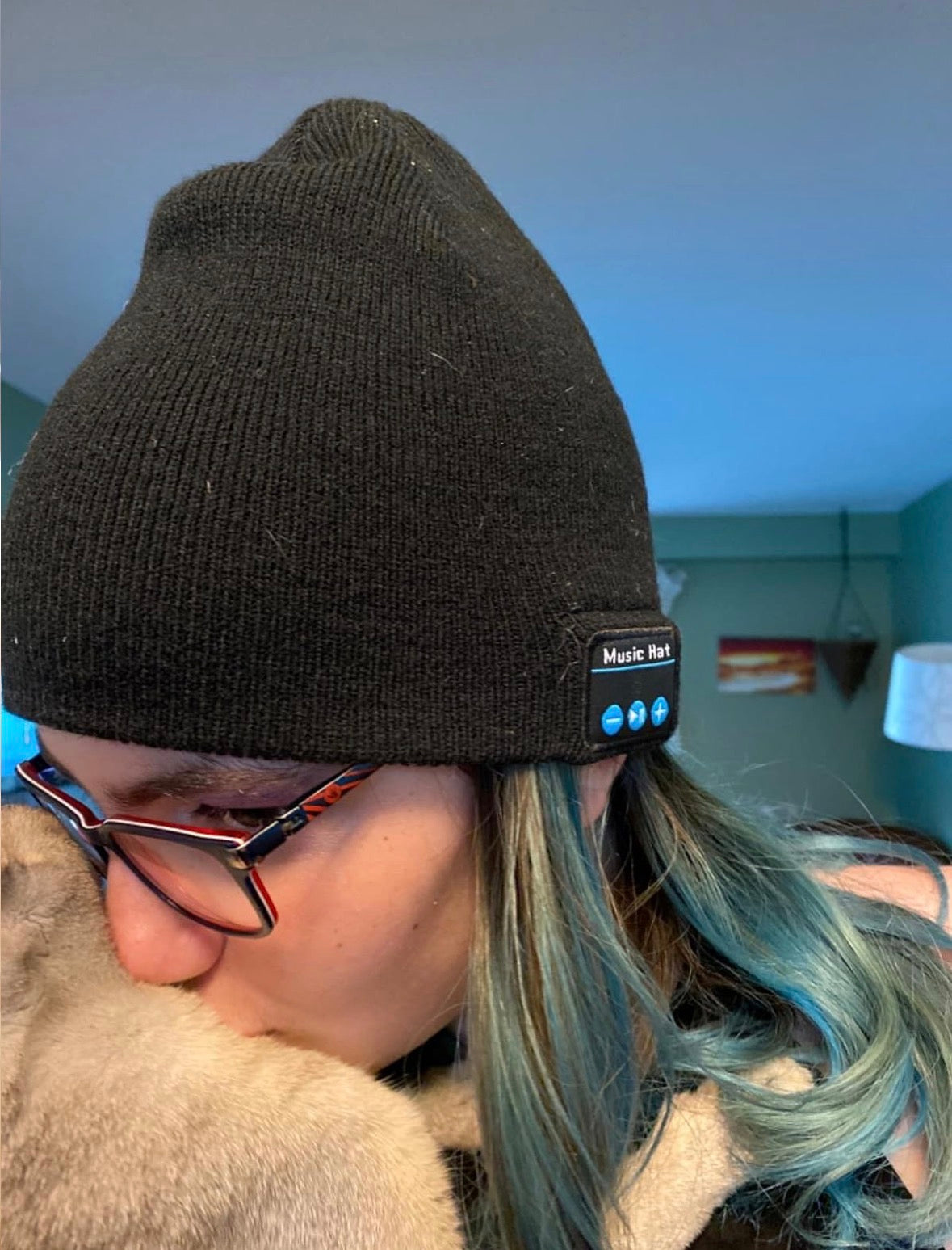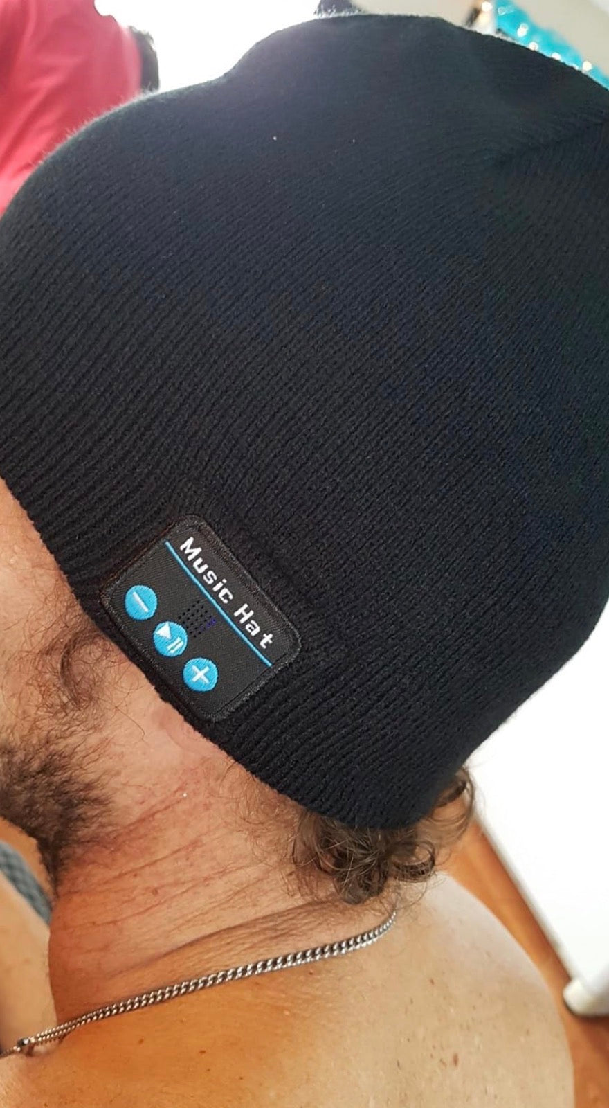 The beanie has built-in Bluetooth speakers inside the fabric. Just connect it to your phone like any Bluetooth device, press play, and enjoy your music hands-free.